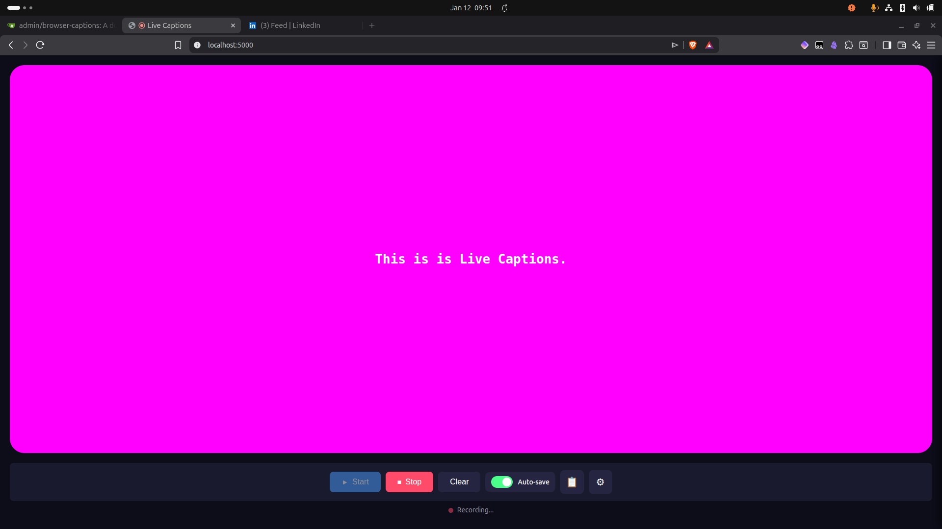 - Recording Support: Save caption sessions as markdown files