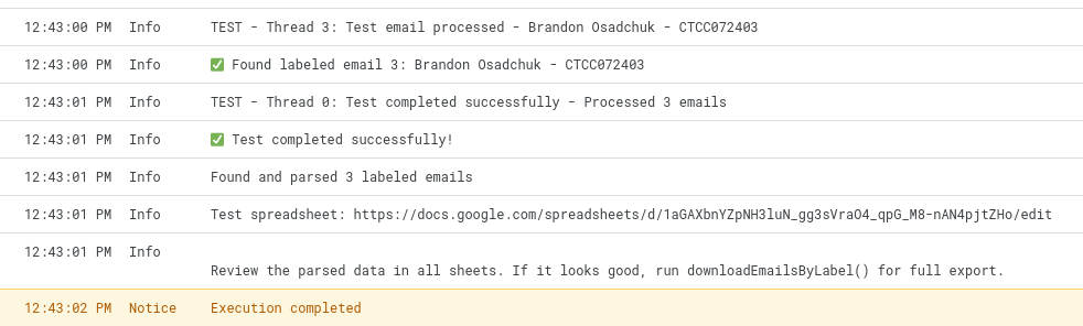 Now wait for the system to run. It will take a few minutes, on average a minute per hundred emails.