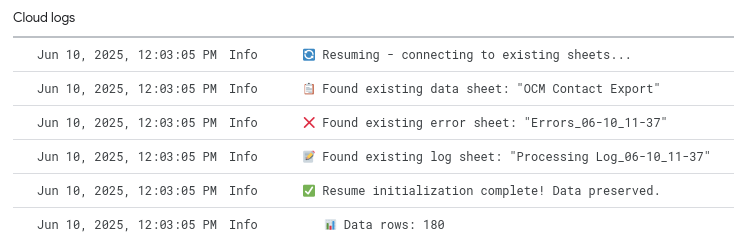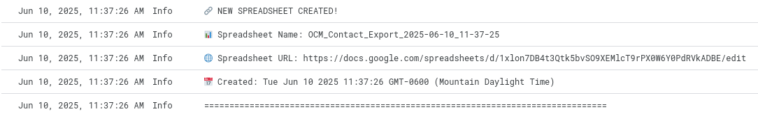 Using internal resources, this process builds a single spreadsheet with all available OCM emails from a users account.